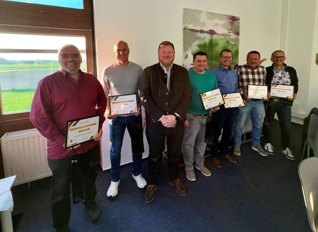 Der Erste Bürgermeister dankt den sieben ausscheidenden Gemeinderäten für ihr ehrenamtliches Engagement und ihren Einsatz zum Wohl der Gemeinde. Er überreicht ihnen jeweils eine kleine Anerkennung als Zeichen der Wertschätzung.